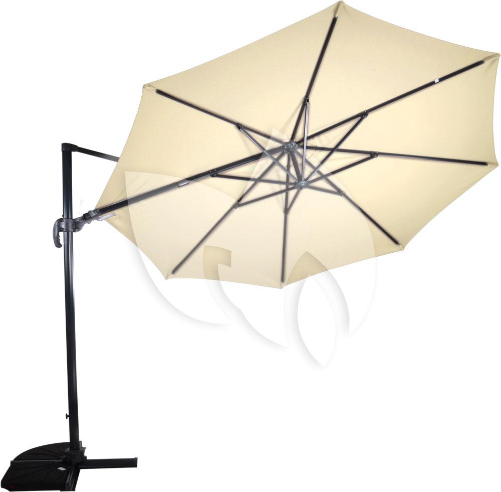 Creëer eenvoudig altijd en overal de beste schaduwplaats met de zweefparasol VirgoFlex 350 cm ecru. De parasol is kantelbaar en draaibaar in alle richtingen, super flexibel dus! Door de flexibiliteit van de parasol geniet u de hele dag door van een aangename schaduwplek. Het doek van de zweefparasol VirgoFlex heeft een diameter van 350 centimeter waardoor er een grote schaduwplaats ontstaat, genoeg schaduw voor uw hele loungeset of tuinset. Het doek is gemaakt van 250 grams polyester en heeft een PA coating en 50+ UV bescherming. Naast een verkoelende plaats zorgt de parasol ook voor een bescherming tegen schadelijke UV-stralen.